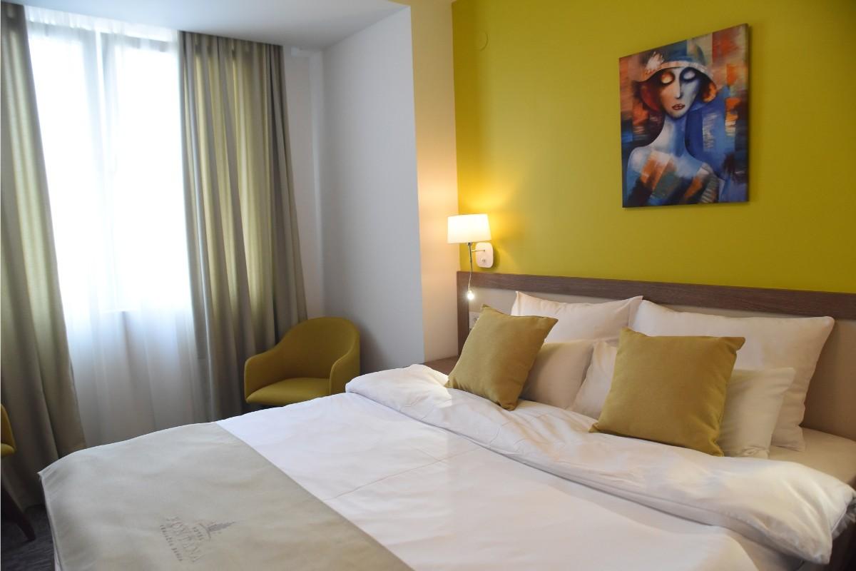 Hotel "Fontana" is located in the heart of Vrnjacka Banja, by the town promenade and the town park. It has been fully renovated in 2018. The complex includes a-la-carte restaurant, modern lobby bar, wellness and fitness center, conference halls, parking. All the rooms are equipped with air conditioning, TV, direct telephone line, Wi-Fi internet access, minibar, hairdryer. The SPA center includes indoor swimming pool, Russian, Finnish and bio-sauna, salt room. On request you can enjoy different cosmetic procedures and massages.