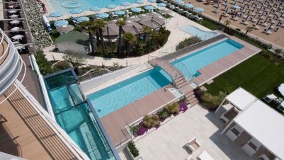 Разположен на 150 метра от Адриатическо море, хотелът предлага Турска баня, гореща вана ,сауна и още много страхотни удобства .Той е удобно разположен, само на няколко метра от крайбрежната алея, пълна с най-модерните магазини, барове и ресторанти в града. В обсега на кратка разходка или още по-кратко пътуване с някой от безплатните велосипеди на хотела ще откриете разнообразие от атракции. Наблизо има тенис кортове, писти за конна езда, голф игрище и аквапарк Aqualand.