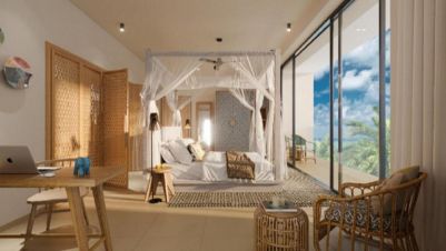 Супериорна стая с гледка море (2 възрастни / 2 възрастни + 1 дете (под 12 г.) / 2 възрастни + 1 дете (под 12 г.) + 1 бебе (под 2 г.): Тази съвременно обазаведена стая, с площ 35 кв. м., предлага балкон с гледка към градина или басейн. Разполага съв спалня или 2 отделни легла + 1 единично легло, баня с душ, климатик, сейф, смарт телевизор, бюро, електрическа кана за кафе или чай, минибар.