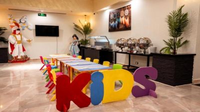 Комплексът предлага разнообразие от услуги и съоръжения, включително просторна градина, открити басейни, водни пързалки, основен ресторант, няколко бара, амфитеатър за анимация, тенис корт, мини голф и магазини. Подходящ е както за семейна почивка, така и за двойки.