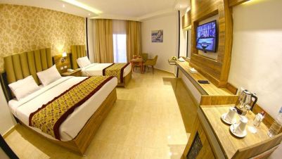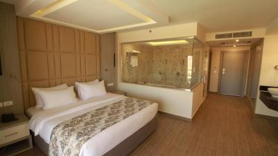 Приблизителна площ на стаята - около 28-32 кв.м. Разполага с телефон, сателитна телевизия, сешоар, сейф, мини бар - срещу допълнително заплащане, електрическа кана с чай и кафе, климатик, баня с тоалетна, балкон или тераса.
