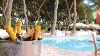 Вечерята се организира в ресторанта на хотела на три-степенно меню със сервиране по предварителен избор между две менюта от типичната италианска кухня, а салатите са от салатен бар. Три-степенното меню включва два вида паста, супа, основно – месо или риба и десерт – пловодове или сладкиш или сладолед. Включеното към вечерята вино е от местни изби. Клиентите могат да поръчат допълнително вино срещу заплащане от специалното селекция от региона на Кампания.