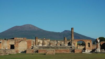 Вулканът Везувий, изригнал през 79 г., е разрушил някогашния процъфтяващ античен град, но вулканичната пепел е съхранила за потомците и до днес богатите домове с невероятни фрески и мозайки, термални комплекси, вили, храмове и театри. Посетителите могат да си представят как са живели в онази далечна императорска епоха. Съхранени са Храмът на Аполон, Базиликата, Форумът, пазарът, храмът на Веспасиан, храмът на Юпитер, термите, храмът на Фортуна Августа, термопилите, публичният дом, водопроводът, улицата на Изобилието, Големият театър, казармата на гладиаторите и много др. Връщане в хотела.