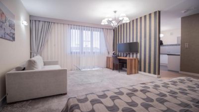 - Апартаменти – с отделна дневна зона, луксозно обзавеждане и гледка към града.